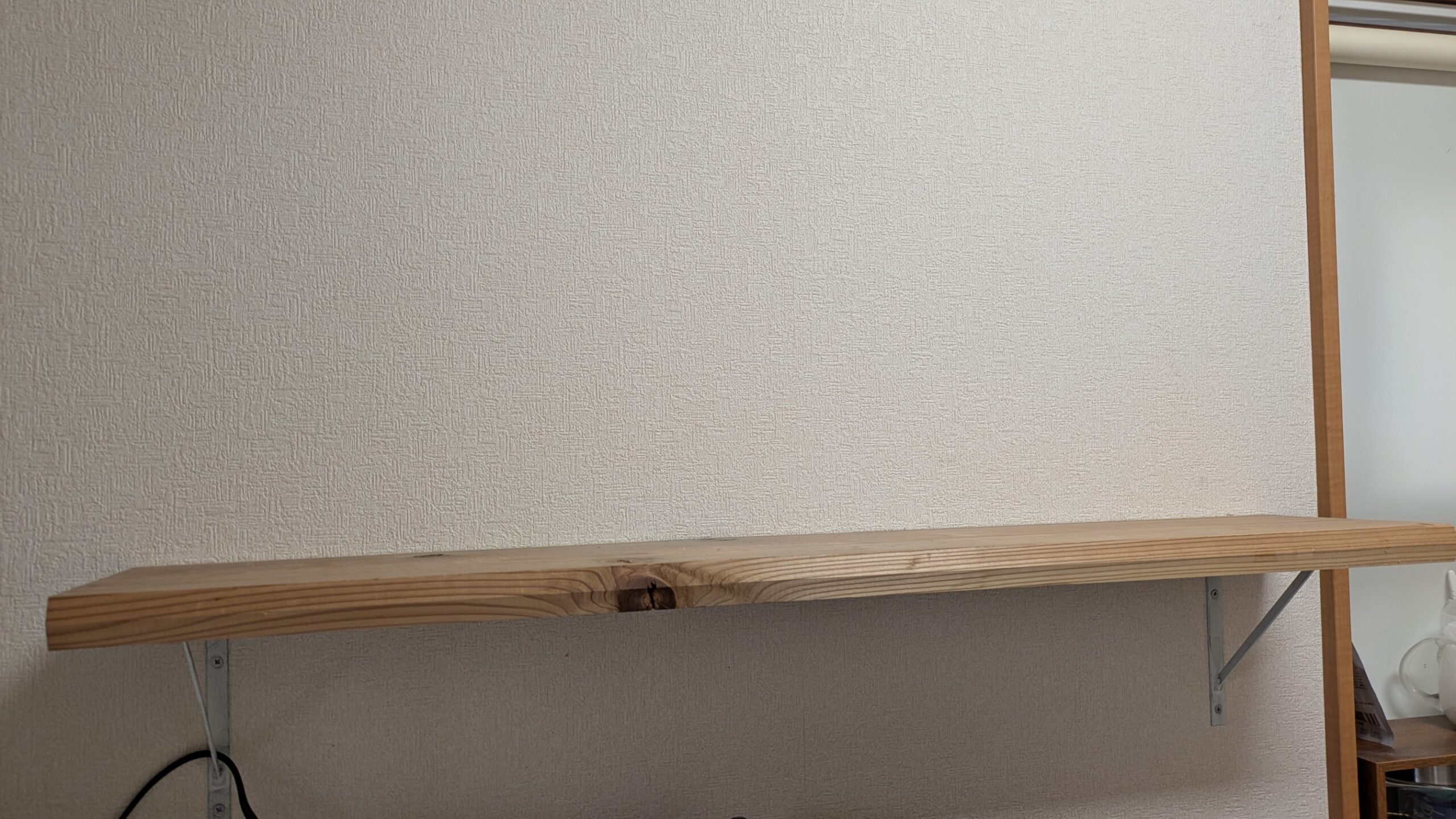今回は壁に穴を空けられる環境での施工でしたので、材料や工程も少なくて済みました。木材の切断などの面倒な工程もありませんので、比較的簡単に作成できるかと思います。