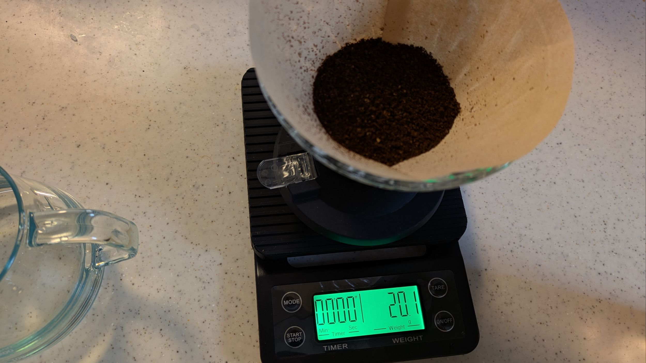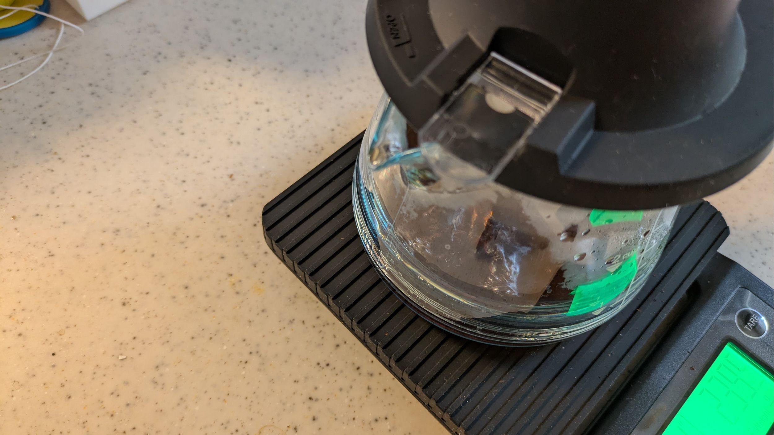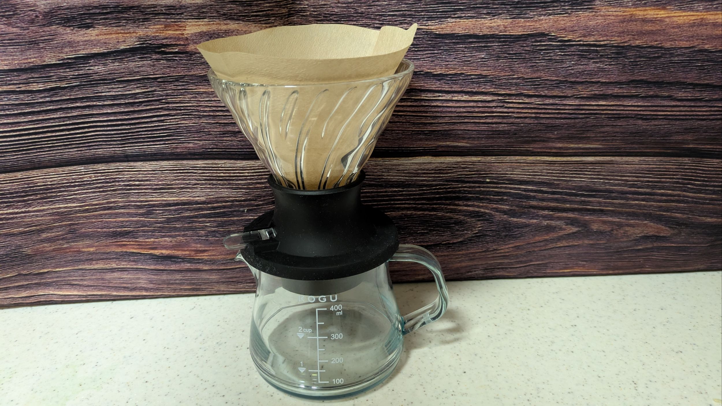 ドリッパー部分が耐熱ガラス製で、シリコンベースも付いているため、プラスチック製のドリッパーに比べるとずっしりとした重みがあります。また、洗う際などに落とすとガラスが割れてしまうリスクがあるため、取り扱いには少し気を使います。