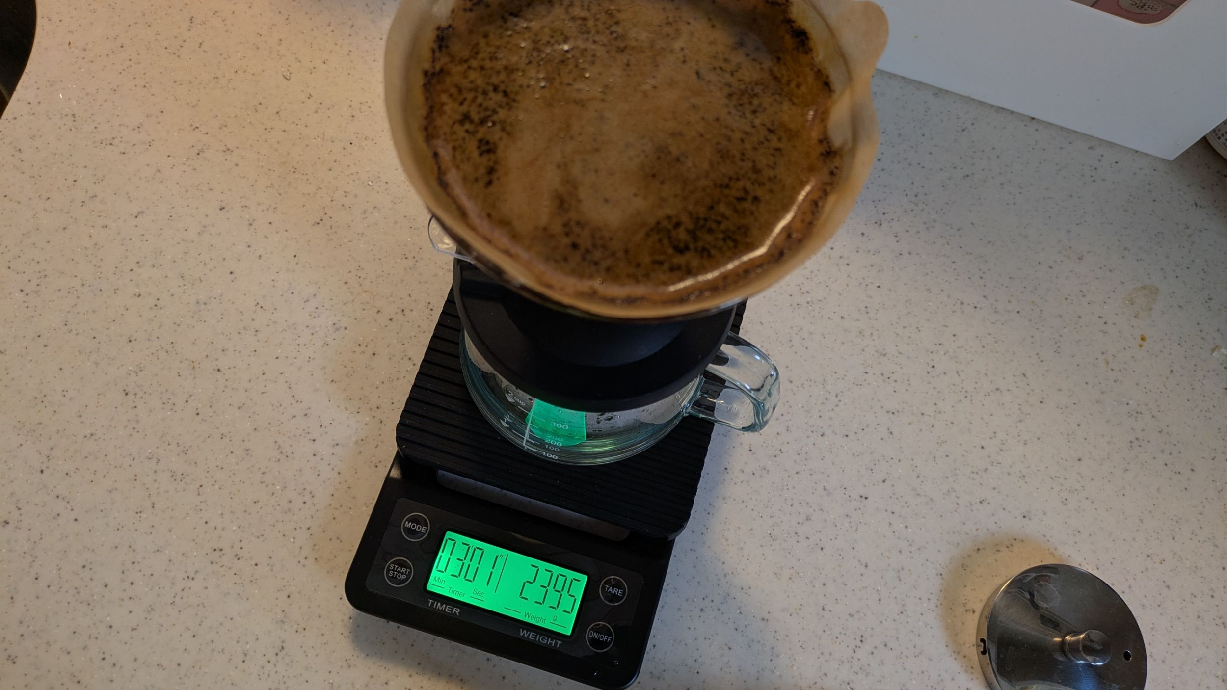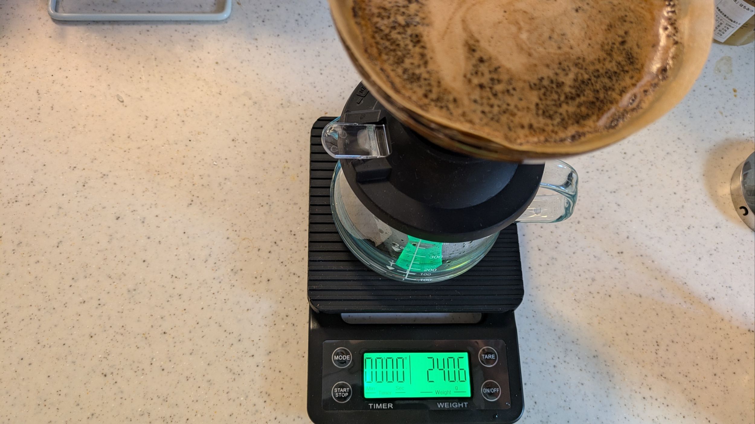 3分経ちましたので、スイッチを下げて抽出したコーヒー液を落としていきます。