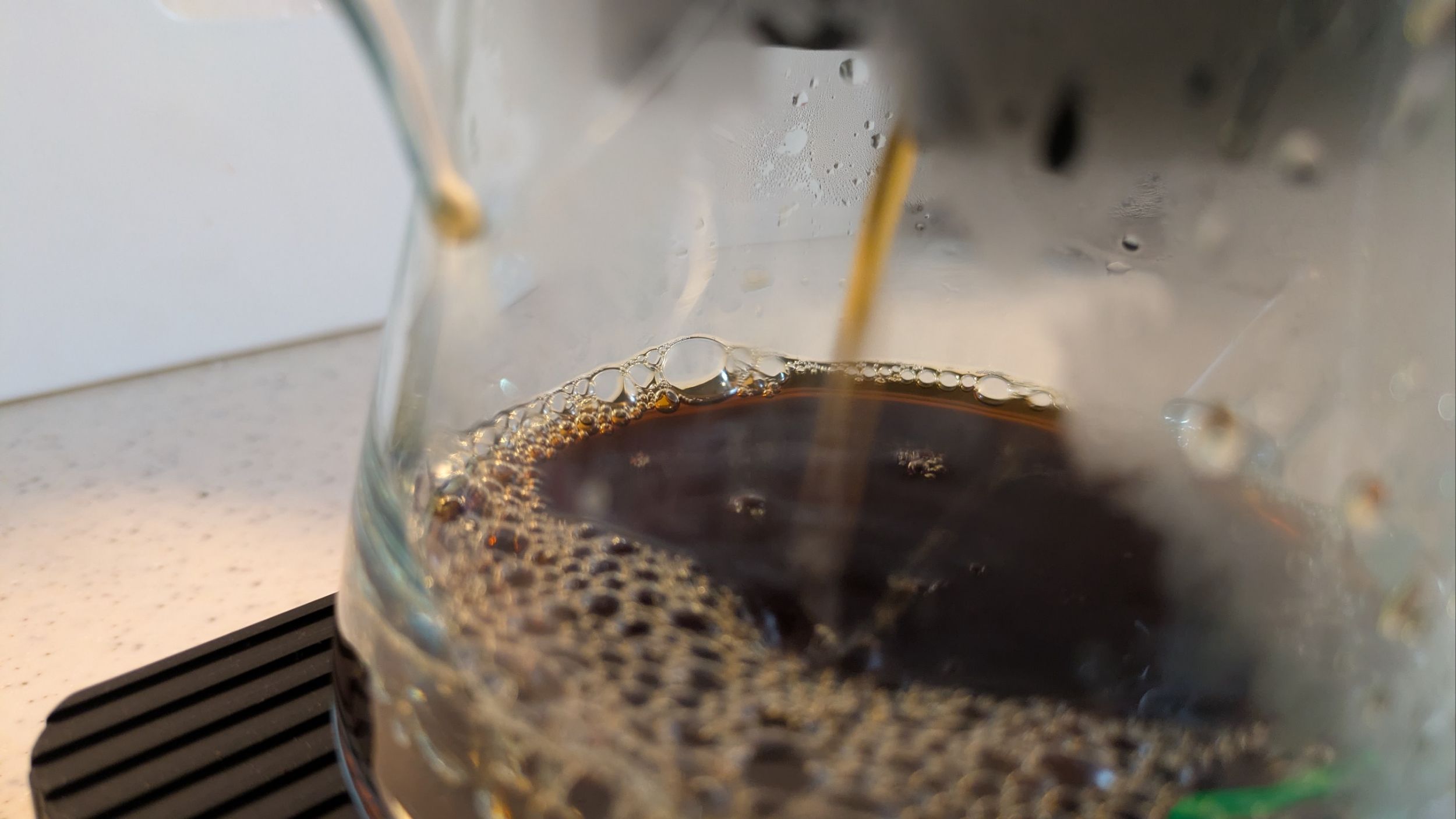 透過法で淹れたコーヒーよりも「まろやか」な口当たりで、長くお湯に浸けている分「雑味」や「苦味」が出やすすそうですが、逆にうまみやコーヒーそのものの濃厚さが出ていて非常においしいです。