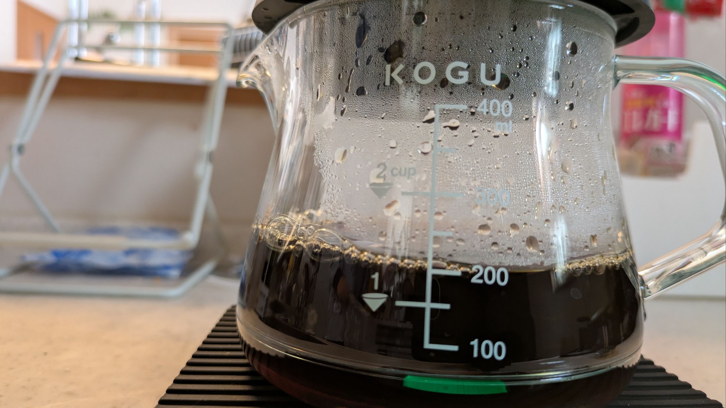 コーヒー液が落ちきったら完成!コーヒー粉20gとお湯240mlで出来上がり量が約200mlです。